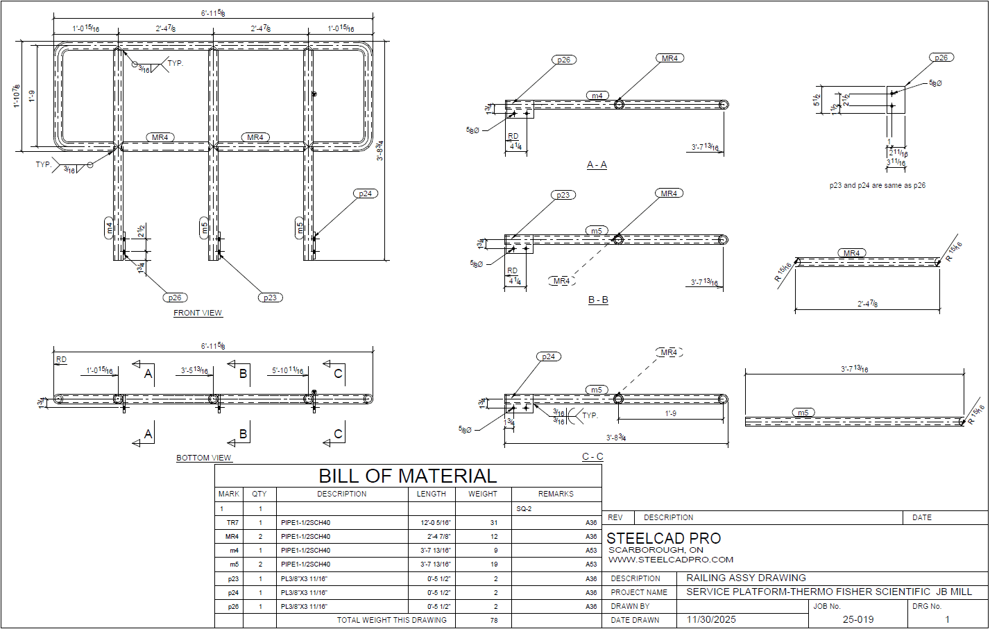 SteelCAD Pro has recently worked with the Nexus Mechanical - Service Platform project for Thermo Fisher Scientific located in Pickering, Ontario . The project scope consist of service platform with bar grating and Safety railing all around. The project needed access ladders and platform to connect to existing access area.
